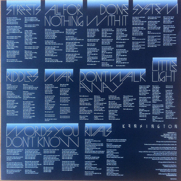 Tracklist: A1. Streets, A2. All For Nothing, A3. Done With It, A4. System, A5. Riddles, B1. War, B2. Don't Walk Away, B3. Little Light, B4. Words You Don't Know, B5. Rivals, CD1. Streets, CD2. All For Nothing, CD3. Done With It, CD4. System, CD5. Riddles, CD6. War, CD7. Don't Walk Away, CD8. Little Light, CD9. Words You Don't Know, CD10. Rivals