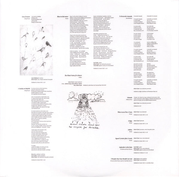 Tracklist: A1. Heaps Of Sheeps, A2. The Duchess, A3. Maryan, A4. Was A Friend, B1. Free Will And Testament, B2. September The Ninth, B3. Alien, C1. Out Of Season, C2. A Sunday In Madrid, C3. Blues In Bob Minor, C4. The Whole Point Of No Return, C5. Te Recuerdo Amanda, C6. Yolanda, D1. When Access Was A Noun, D2. Fridge, D3. Salt / Ivy, D4. Signed Curtain (Plus Cornet), D5. September In The Rain, D6. I Wonder How Your Breath Can Last