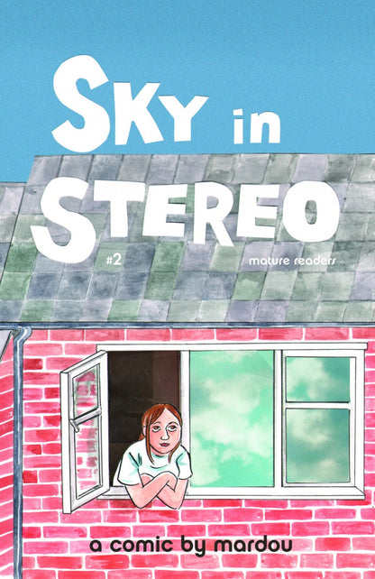 Sky in Stereo #2 is the second issue of the critically-acclaimed series by cartoonist, Mardou. This issue continues the story of Iris, a young woman turning eighteen, slowly losing her tenuous grip on her world of burger-flipping, drugs, and Rock ‘n Roll.