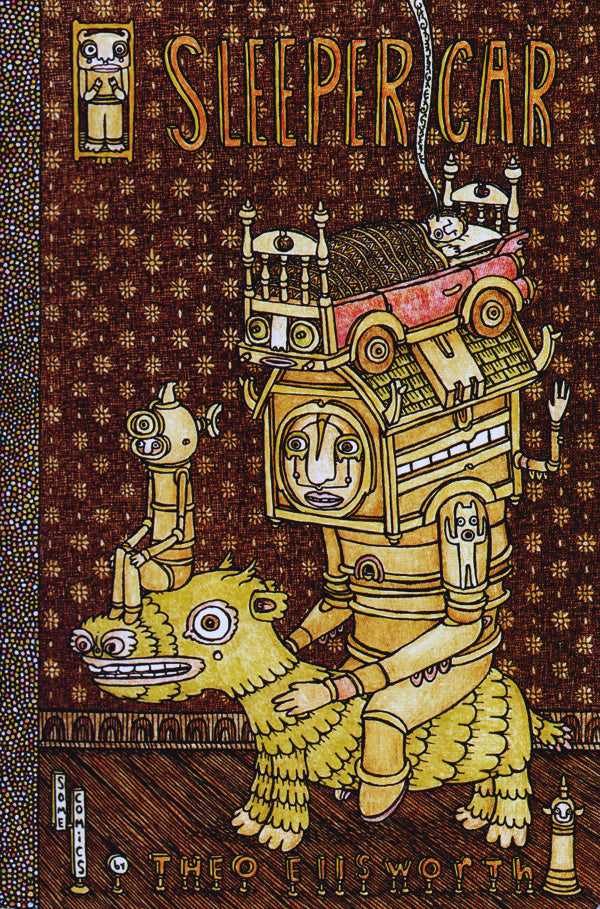 Sleeper Car is Theo Ellsworth’s next hilarious and inventive leap away from the inward journey and into pure fantasy. This small collection of short stories features gambling robots, a thrilling space mission, a whimsical train ride and a coterie of generous sky gnomes. With his unique blend of humor, wild creativity, and artwork as intricate as ever, Ellsworth realizes worlds unknown. Sleeper Car is about discovery, exploration and the benefits of letting your imagination guide you.