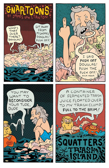 Taste the frothy brine of the Pacific Ocean alongside the hardscrabble band of degenerate squatters who inhabit it's plentiful trash islands. Gnartoons creator James the Stanton brings you out to the Great Pacific Trash Vortex to see for yourself, who are these garbage dwellers and what are they having for dinner?