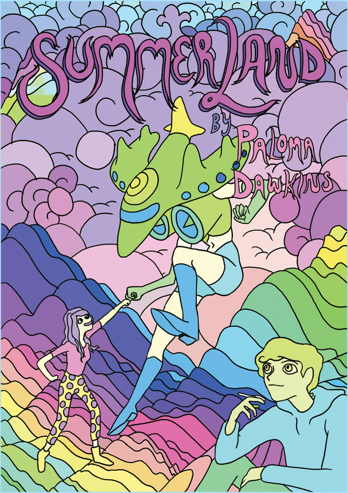 Summerland is the story of Santana and her cousin Gwen who work on a play with Chucho while all three are vacationing. Created by the animator Paloma Dawkins, who works in a riotous color palette.