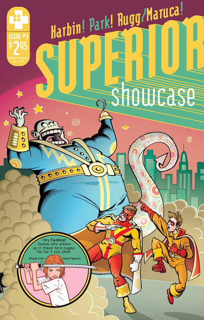 This THRILLING THIRD ISSUE of the comic that is all about heroes that are super: SUPERIOR SHOWCASE! This issue explodes with the uber-talents of team STREET ANGEL aka Bodacious Brian Maruca & Jazzy Jim Rugg, debuting the work of Dandy Dustin Harbin & last but not least, the Lovely Lady with Luscious Lines Laura Park! All wrapped in a fantastic cover by talented Rip-Roaring Roger Langridge! Smack! Bam! Pow!
