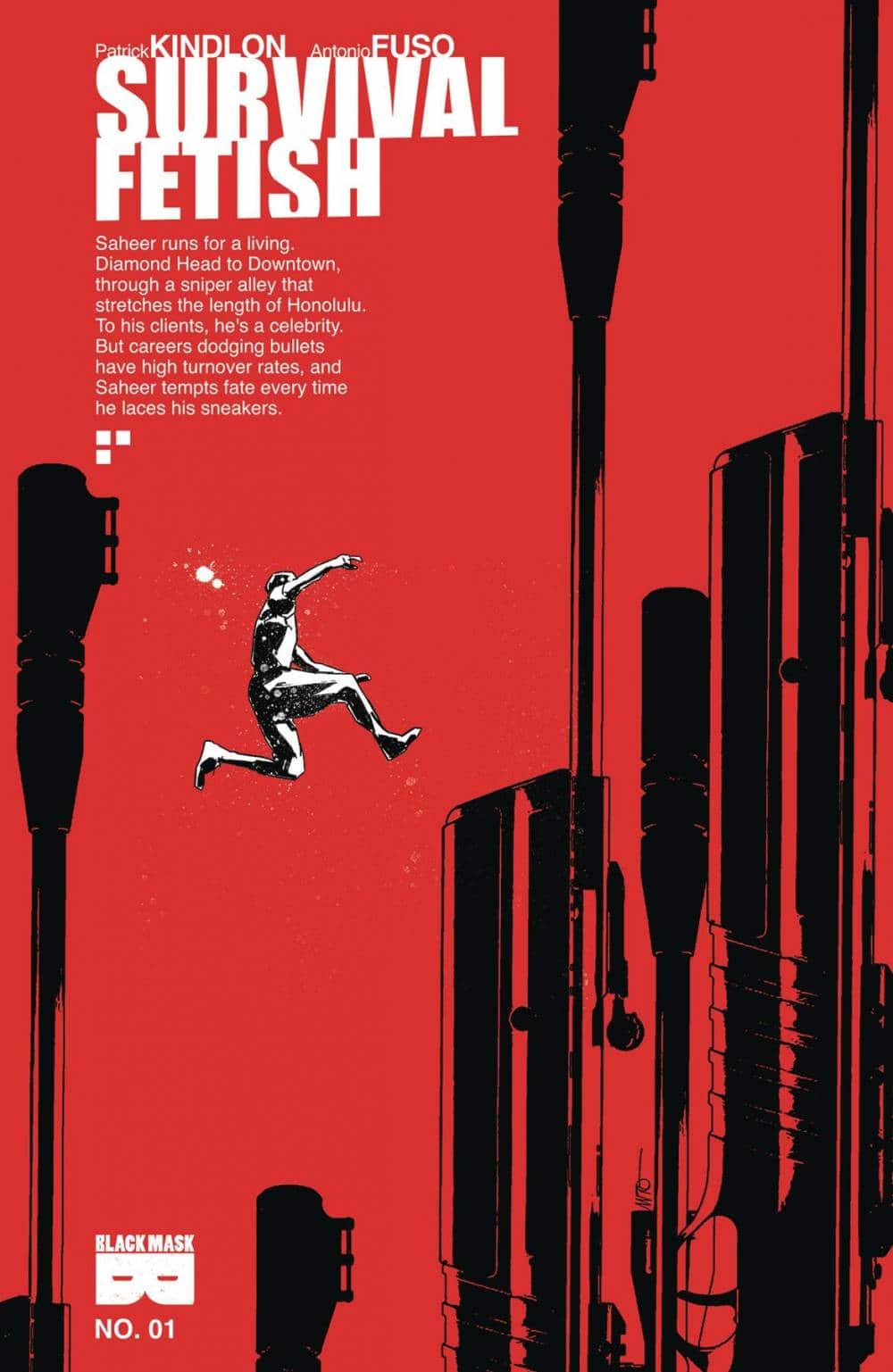 Downtown Honolulu is a sniper alley, and Saheer runs it better than anyone. He's a local celebrity for transporting medicine and information across a no-man's land occupied by militias and street gangs. But what people say about you is never the full story, and when the cheers die out Saheer is left with just his anxieties... and his secrets. The first of a five-issue series that keeps its foot pressed on your adrenal gland. From Patrick Kindlon (We Can Never Go Home, There's Nothing There, S.H.I.E.L.D.: Quake) and illustrator Antonio Fuso (James Bond), Survival Fetish is a pulse-pounding thrill-ride that mixes political intrigue with deep characters and high octane action.