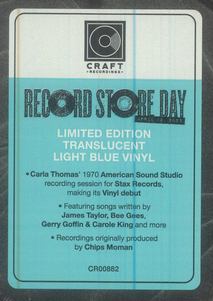 In 1970, Carla Thomas went to American Sound Studio in Memphis to record a new album for Stax Records. Two of the songs were released as a single, but the complete album was shelved and was not officially released until 2013 as part of a compilation. This reissue marks the album's vinyl debut after 55 years and includes songs written by James Taylor, The Bee Gees, Goffin and King, and more.Pressed on translucent light blue vinyl, exclusively for Record Store Day 2025.