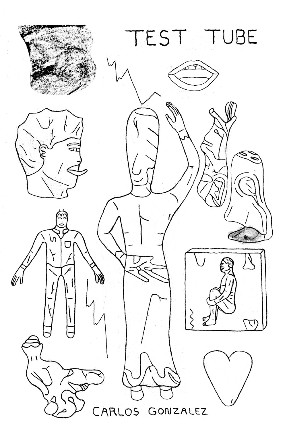 Carlos Gonzalez is a deeply inspirational figure in the underground comics and music scene. He has created a vast body of DIY work including the 500 page sci-fi opus, Slime Freak, experimental films shot on VHS, and a number of cassettes recorded with his musical project, Russian Tsarlag. His comics have been published in anthologies like Kramers Ergot 6 and his artwork has been exhibited in galleries with members of Fort Thunder. Test Tube was nominated for an Ignatz award for Outstanding Minicomic.