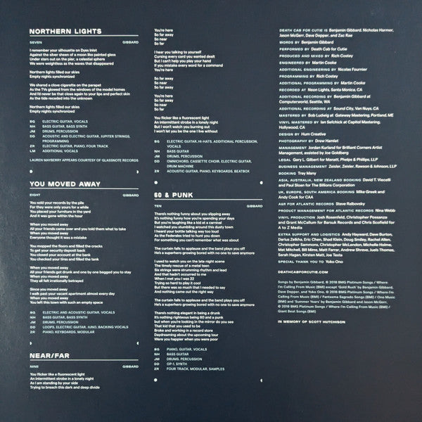 Tracklist: A1. I Dreamt We Spoke Again, A2. Summer Years, A3. Gold Rush, A4. Your Hurricane, A5. When We Drive, B1. Autumn Love, B2. Northern Lights, B3. You Moved Away, B4. Near/Far, B5. 60 & Punk