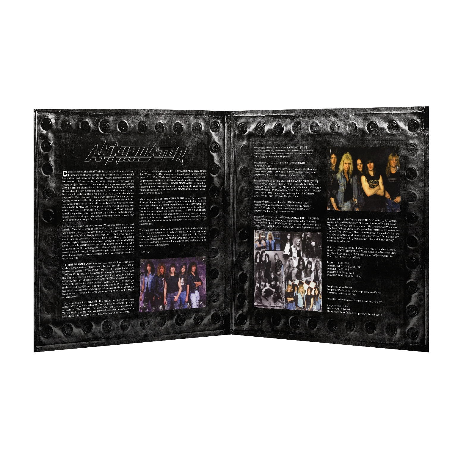 THE BEST OF ANNIHILATOR compiles cuts from the band's first three studio albums, a rarities collection, and a live disc, all of which emerged on Roadrunner between 1989 and 1996.