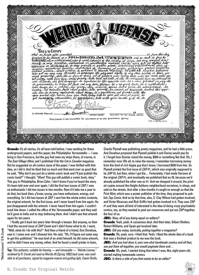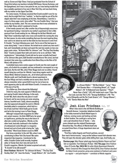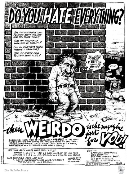 This 288-page hardcover book is as much a comprehensive history of the alternative comics scene of the 1980s and early ’90s ? from New York City punk to Seattle grunge ? as it is the story of a single magazine, an exhaustive retrospective that includes rare and unseen artwork from that era, as well as new comics from modern-day artists paying homage to the great oddball mag. In its time, the periodical featured the finest work of many artists, particularly the best material by R. Crumb himself, Weirdo's founder and best known for ZAP Comix, Fritz the Cat, and Mr. Natural, and a man widely heralded as the greatest cartoonist of all time.