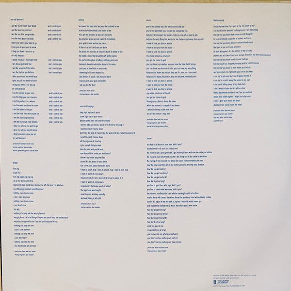 Tracklist: A1. Mr. Self Destruct, A2. Piggy, A3. Heresy, A4. March Of The Pigs, B1. Closer, B2. Ruiner, B3. The Becoming, C1. I Do Not Want This, C2. Big Man With A Gun, C3. A Warm Place, C4. Eraser, D1. Reptile, D2. The Downward Spiral, D3. Hurt