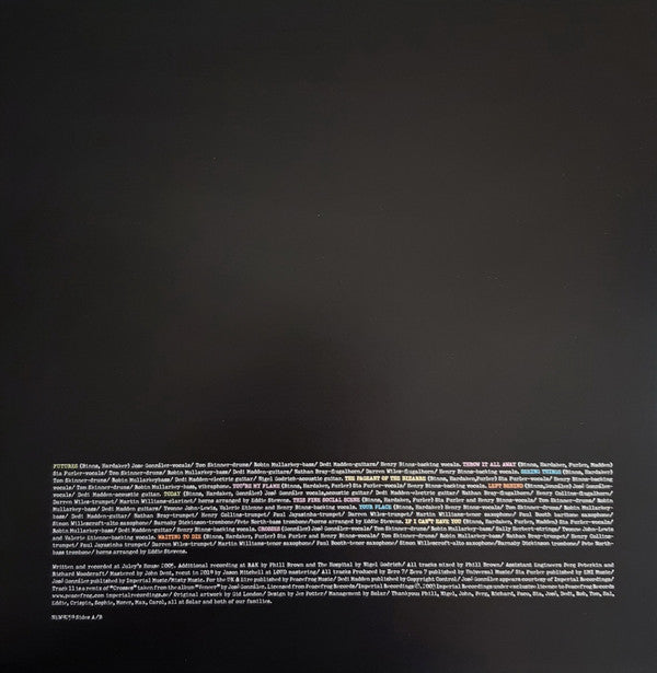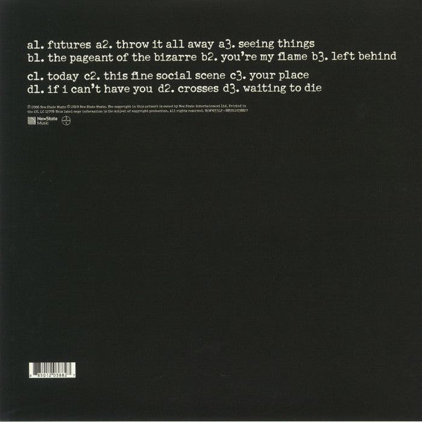 Tracklist: A1. Futures, A2. Throw It All Away, A3. Seeing Things, B1. The Pageant Of The Bizarre, B2. You're My Flame, B3. Left Behind, C1. Today, C2. This Fine Social Scene, C3. Your Place, D1. If I Can't Have You, D2. Crosses, D3. Waiting To Die