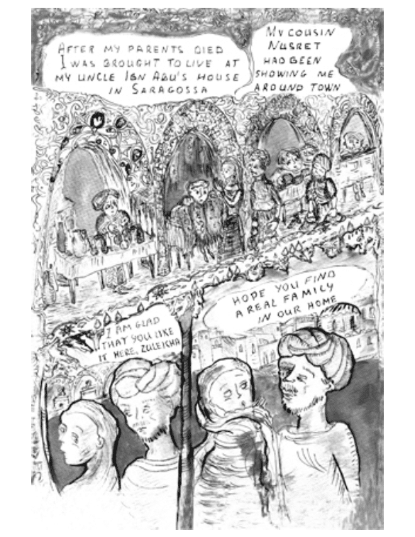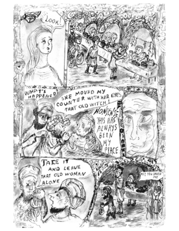 A gorgeous tale from Olga Volozova, based on the legends of poet and scholar Solomon Ibn Gabirol. Crowded pages filled with breathlessly light linework and a touching, dreamlike narrative.