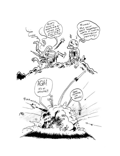 “A thoughtful, provocative book about the intersection between the personal and political, focusing on the relationship between war and sex. He approaches the subject in a number of different ways (literal, lyrical, metaphorical), all with a lively, loose line.” -- Rob Clough’s Top 100 Comics of the ’00s