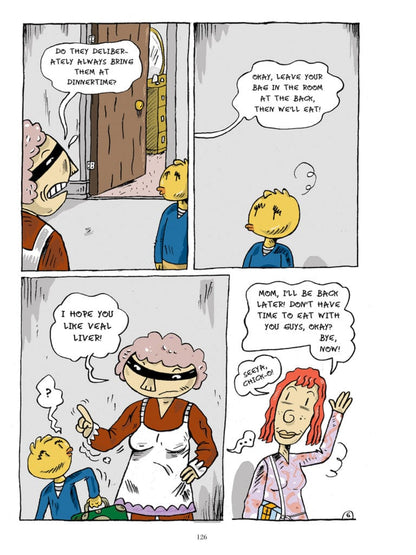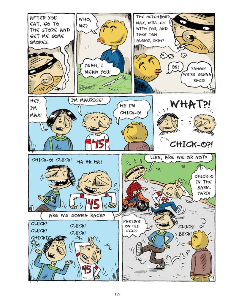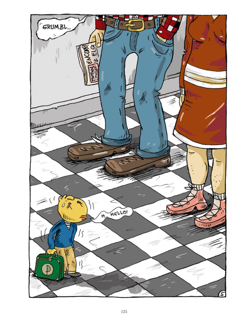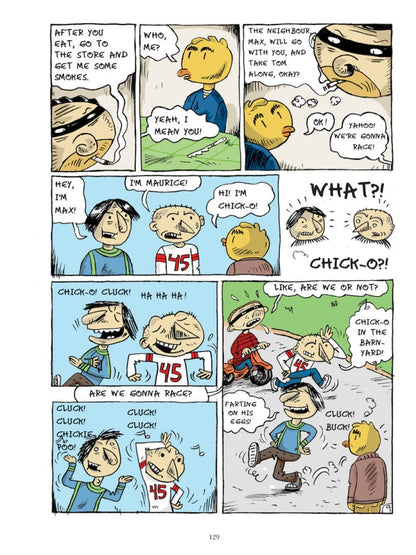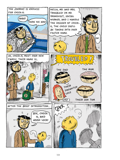 A poignant account of an alcoholic father who drags his family into misfortune, The Vagabond Valise is the heart-breaking autobiographical story of Siris, represented by his chicken-headed alter ego. Siris paints a sincere and poetic portrait of his troubled childhood, in and out of foster homes, but also of the working-class, post-war Quebec where it took place. Ten years in the making, The Vagabond Valise is the first graphic novel from a founding father of the Quebec comix underground.