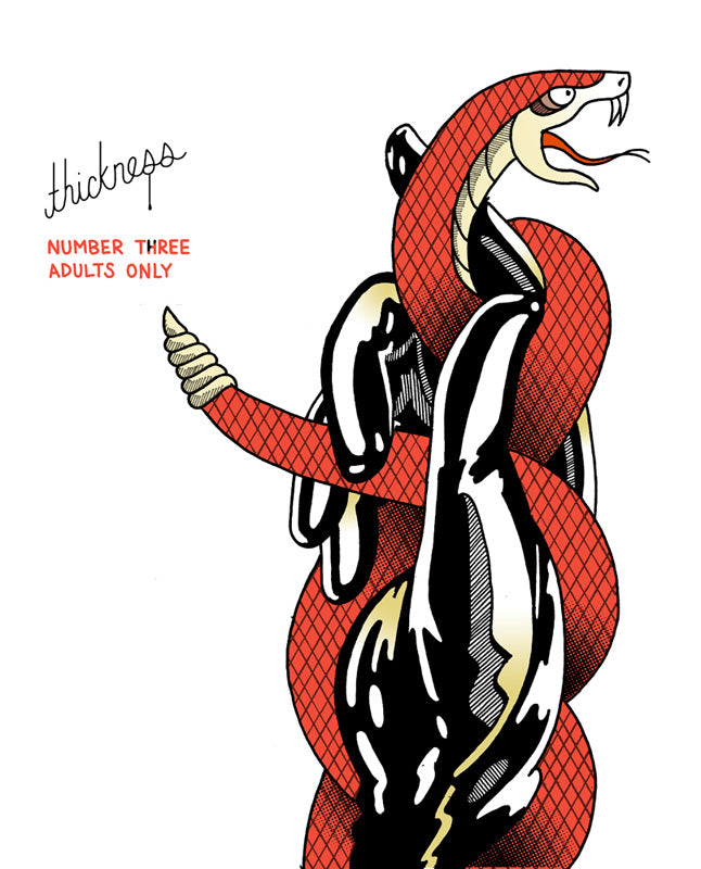 "Thickness #2 is the real deal: talented, fearless cartoonists working in that viscous red zone of pleasure, terror, filth, and fun where the only thing that matters is what the body does and doesn’t want, and your brain is simply forced to go along for the ride. Bravo, thumbs up, panties down." - Sean T. Collins