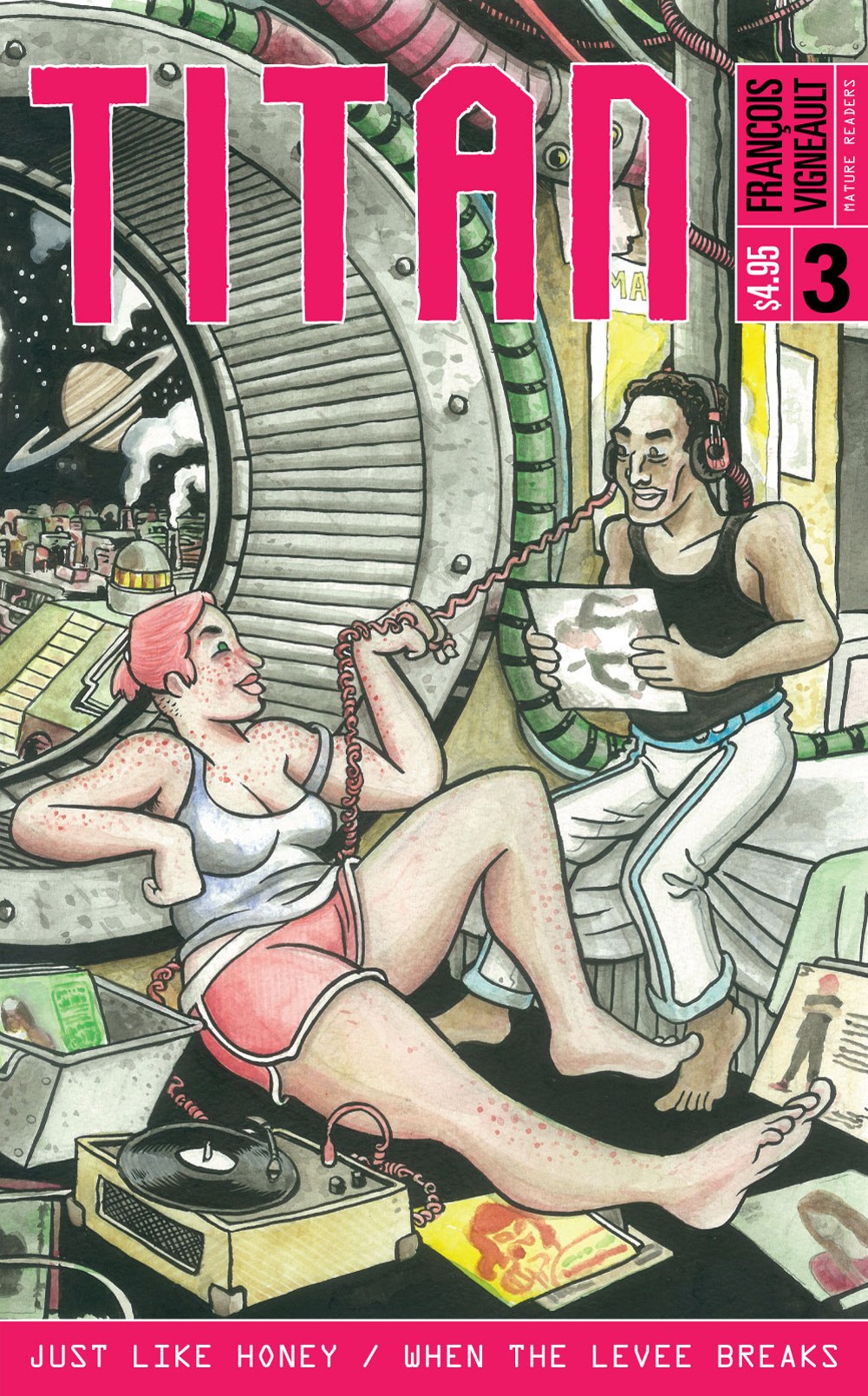 Things are heating up on Homestead Station! João and Phoebe find comfort in each other’s arms, but their romantic idyll is quickly threatened as tensions between the Titans and Terrans finally reach the breaking point. Worlds collide in this sexy and ground-breaking issue! Back cover by Mackenzie Schubert.