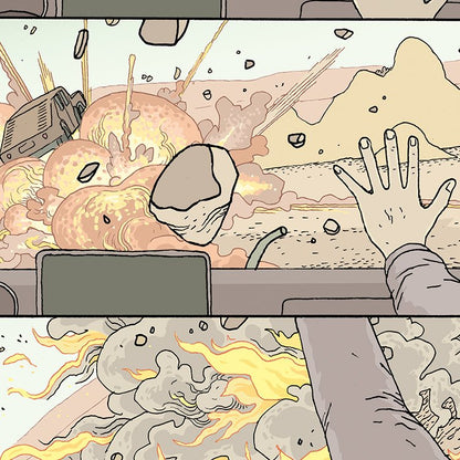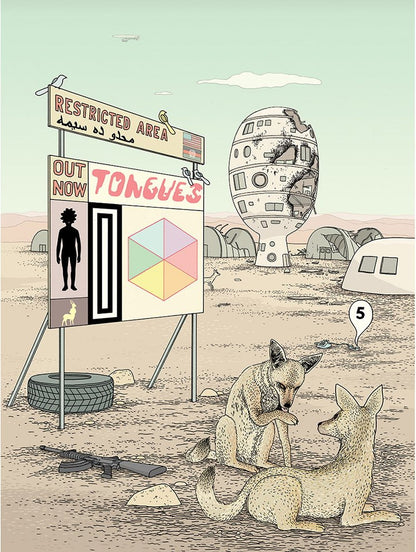 Tonguesโ fifth chapter has arrived! The packed, 56-page issue is framed by an extended, contentious, three-part conversation between the Prisoner and a certain Unexpected Visitor about the fate of the world. Their talk takes us back into the ancient past and then ends explosively, altering both parties' prospects and the course of the story generally. In between, we go underground with Astrid, witnessing an encounter with an adversary, and Teddy Roosevelt and Nico have a rendezvous in the desert that endsโฆ badly. A few other small beginnings and endings are folded in as well, one of which floats us slowly to distant corners of the earth. We can't say much more than that without spoiling things. There's some good stuff here.