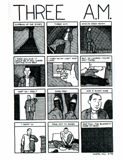 Jeff LeVine’s Watching Days Become Years #1 presents 40 pages of unique and personal comics, real life stories set in Chapel Hill, San Francisco, Portland, and Los Angeles. This is a collection of the author’s thoughts on working and city living. The tone ranges from darkly comic and down to earth, to startling clear observations on the world at large, all skillfully drawn with the eye of a poet.