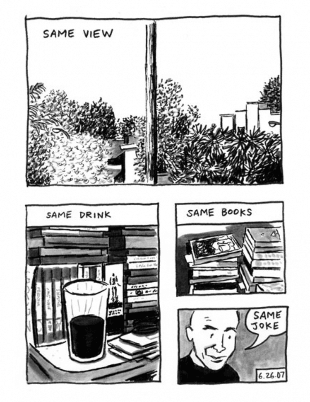 The brand new 4th issue of Jeff LeVine’s Watching Day Become Years, is packed full with more of the unique brand of comics we’ve come to expect from his hand. Half humor, half arty-bullshit. Travel to San Diego, Seattle, Portland, and back home to Los Angeles. Look at trees. Read books. Go to work, come home, and on and on.