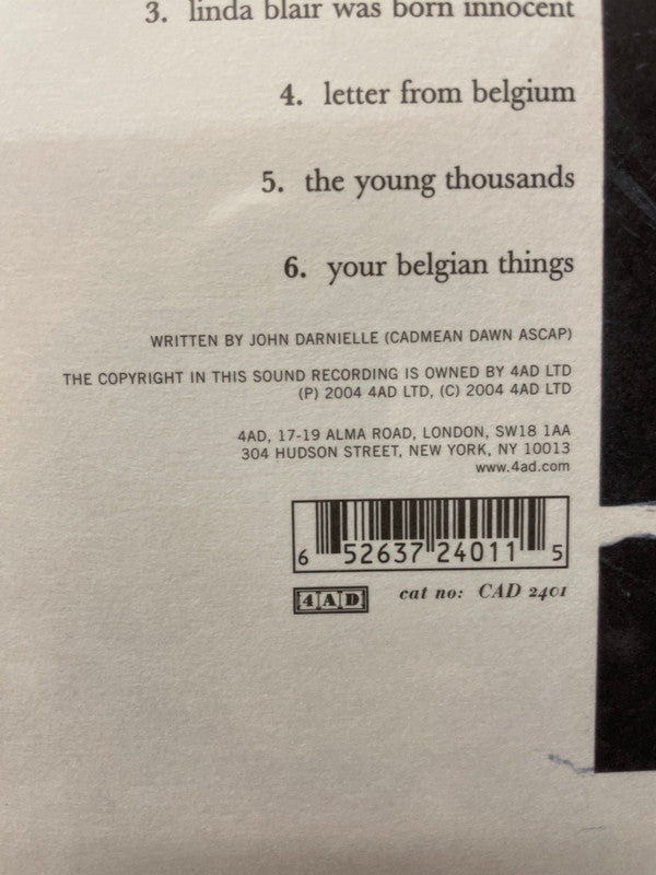 Tracklist: A1. Slow West Vultures, A2. Palmcorder Yajna, A3. Linda Blair Was Born Innocent, A4. Letter From Belgium, A5. The Young Thousands, A6. Your Belgian Things, B1. Mole, B2. Home Again Garden Grove, B3. All Up The Seething Coast, B4. Quito, B5. Cotton, B6. Against Pollution, B7. Pigs That Ran Straightaway Into The Water, Triumph Of