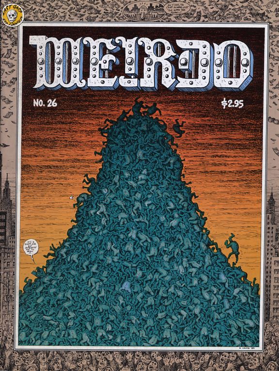 A fat dose of Weirdo, jam-packed with comic strips. Features the classic comics Quaker School Q-Ties in "Plan Against the Boys, A Philadelphia Story" by Phoebe Gloeckner; "A Bird in the Beard" by Penny Moran; "People... Ya Gotta Love 'Em! by Robert Crumb, "Big Bitch" by Spain, "Growing Up as Arnie's Girl" by Aline Kominsky-Crumb, "Where am I" by Roy Thompkins, “Momster" by Ted Jouflas and "Heavy Flow" by Julie Doucet. Shorter strips from by Krystine Kryttre, Mary Fleener, Leslie Sternbergh, Lloyd Dangle, and Stanley Goldstein. Harvey Pekar contributes his Harvey Sez column.