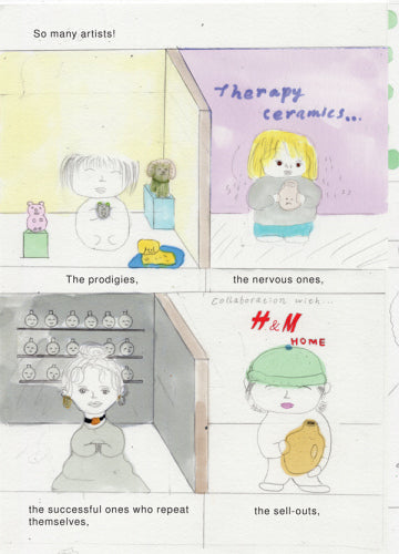 Welcome to World Ceramic Fair. Many artists are meeting and greeting their fans. But in one spooky booth, a narrow-eyed artist with an empty stomach is waiting for a visitor with the right taste. Let’s wish her luck!